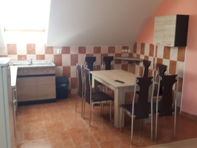 Ubytovanie poskytujeme na dvoch podlažiach. Na prvom poschodí je 5 dvojlôžkových izieb, na druhom (exkluzívnejšom) poschodí sú 4 väčšie izby pre 2 osoby s možnosťou pridania prístelky. Na každom poschodí sa nachádzajú 2 toalety a 1 kúpeľňa. V spoločenskej miestnosti je televízor a pripojenie na internet. K dispozícii je aj kuchynský kútik s platničkou a chladničkou.