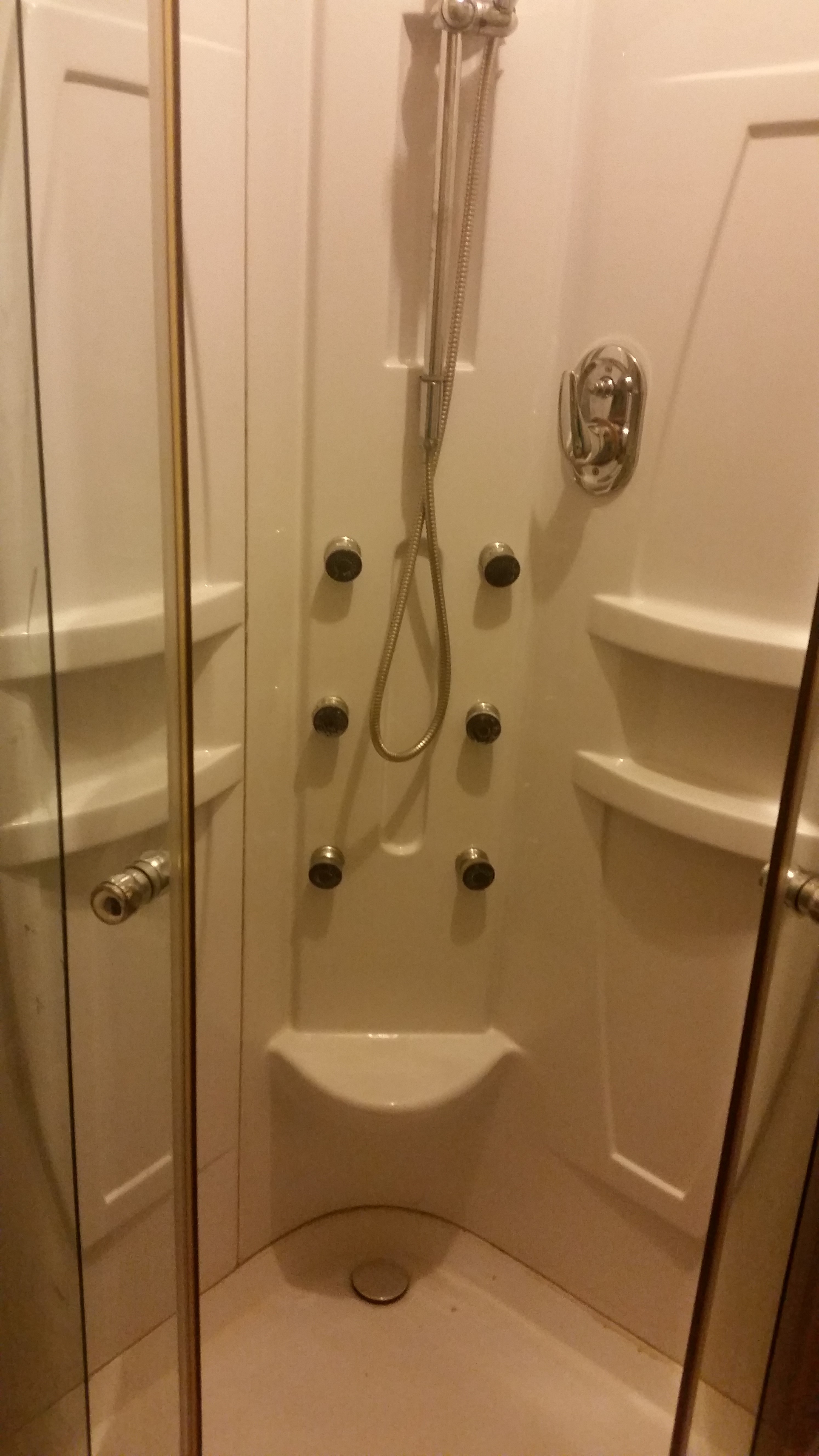 V kúpelni je umývadlo, masážný sprchový kút, automatická pračka, wc.