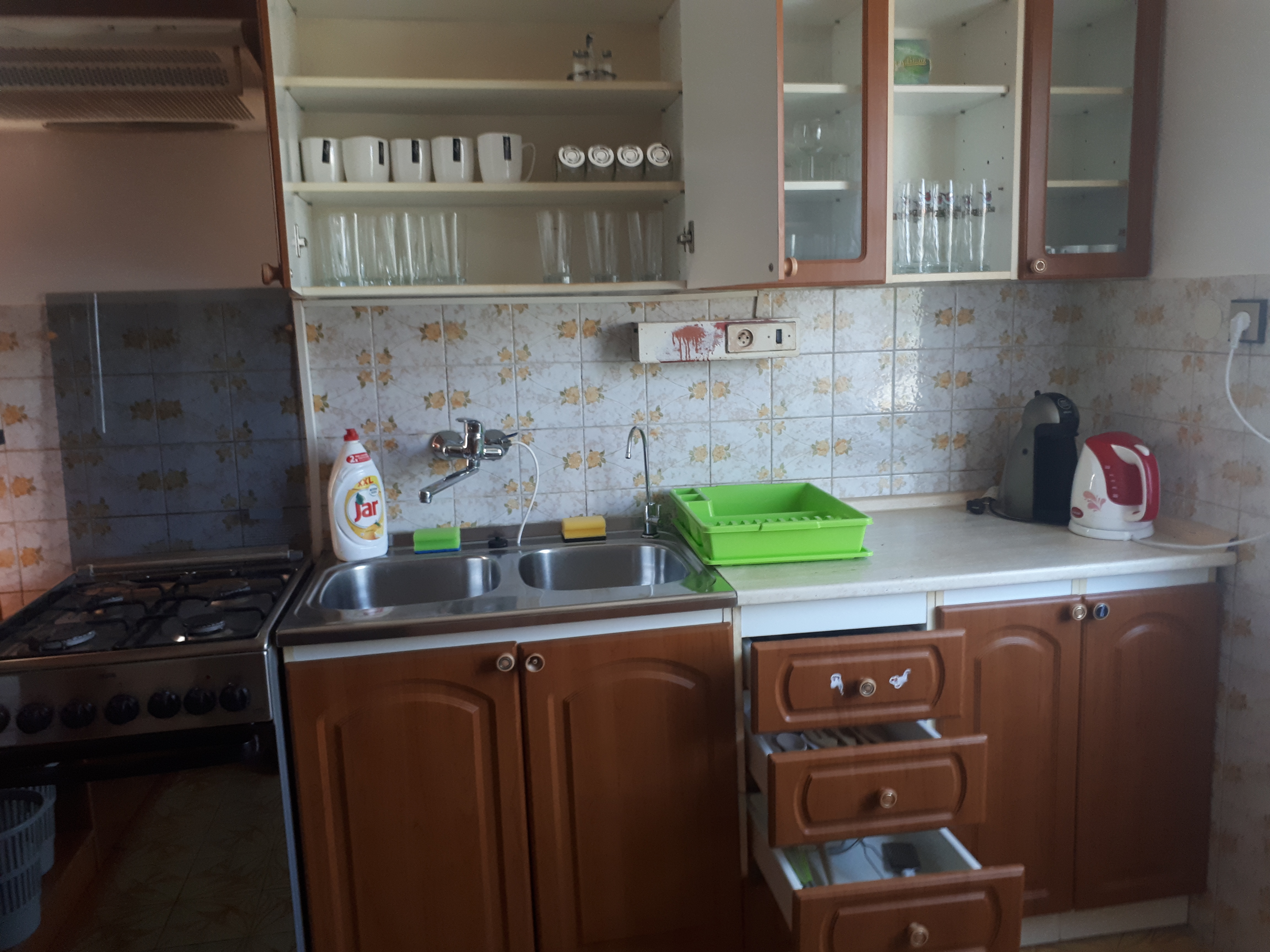 V Apertmáne je kompletne zariadená kuchyňa a to hrnce, taniere, poháre , píbory takisto ako chladnička s mrazničkou, šporák , elektrická pec, rychlovarná kanvica, tóstovač, kávovar Dolce Gusto, mikrovlnka. Ku kuchyni patrí aj jedálný kútik so stolom a so stoličkami.