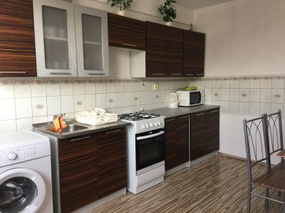 Dom je kompletne zariadeny, vcetne kuchyňského riadu, bielej techniky, postelneho pradla a upratovania 2 x mesacne, wifi zadarmo, vo dvore moznost parkovania pre 5 aut. vcetne parkovacieho miesta v garazi. Potraviny cez ulicu, zastávka autobusu v dosahu do 100 m, dobra obcianska vybavenost.