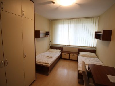 Všetky izby okrem jednolôžkovej izby a štúdia disponujú spoločnými kúpeľňami a toaletami nachádzajúcimi sa na chodbe ubytovne.
