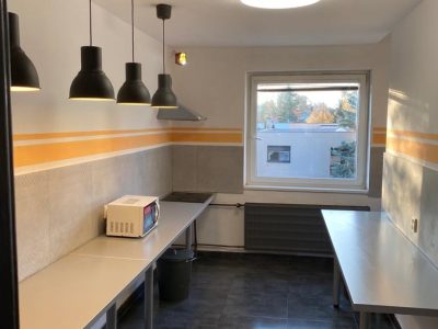 Každá izba disponuje samostatnými pevnými lôžkami, pracovným stolom, chladničkou a novým nábytkom. Pre všetkých sú k dispozícii pekné tri pánske kúpeľne a jedna samostatná dámska so sprchovacími kútmi a toaletami. Každé poschodie je vybavené samostatnou modernou kuchyňou. U nás si taktiež operiete bielizeň v práčovni.