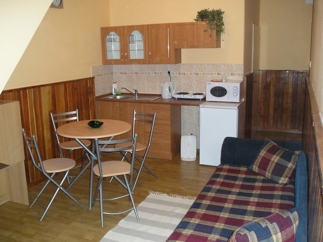 Privát má komplet vybavené tri apartmány . Každý apartmán má 4+2 lôžka , komplet vybavenú kuchynku ,mikrovlnku , chladničku , rýchlovarnú kanvicu , kombinovaný sporák , TV-SAT , WC- sprchu . V prípade záujmu objednanie večerí .V celom objekte Wifi grátis .