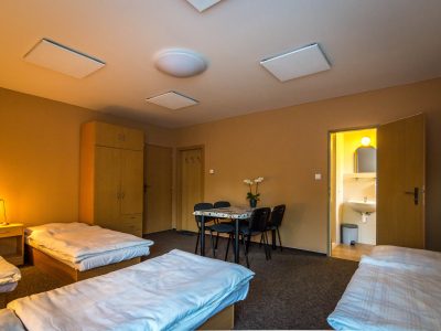 Na prízemí ubytovne sa nachádzajú 3 nové komfortne zariadené izby vyššieho štandardu (1x2, 2x4). Na každej izbe je LCD televízor, kúpeľňa so sprchovým kútom a toaleta. Hostia majú k dispozícií na prízemí zariadenú kuchynku s chladničkou.