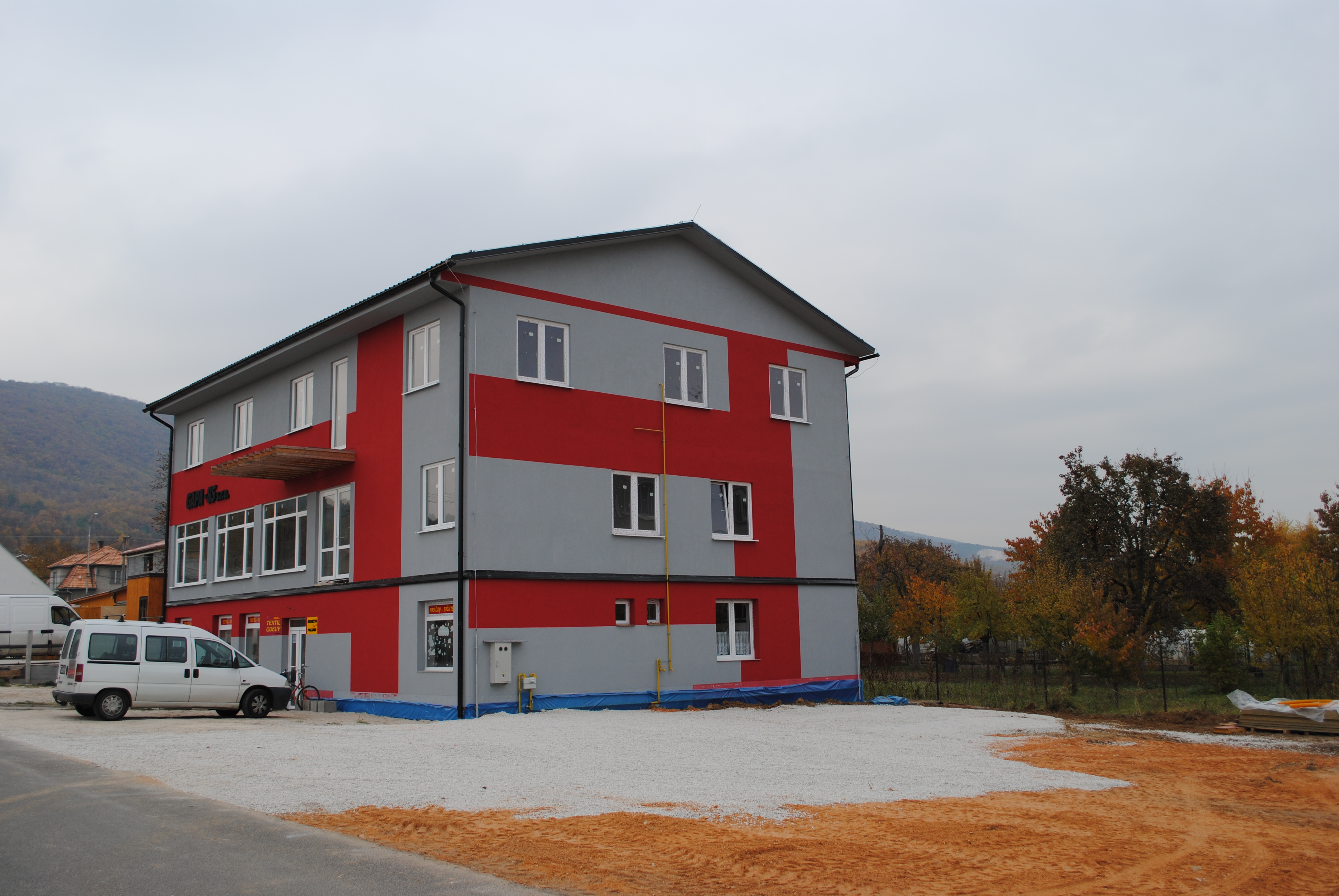 ubytovne.Ubytovňa je vhodná najme pre ľudí pracujúcich v gumárenských podnikoch,ktoré sa nachádzajú v obci.ubytovňa sa nachádza v polyfunkčnej budove kde sa dá nakúpiť rôzny tovar.