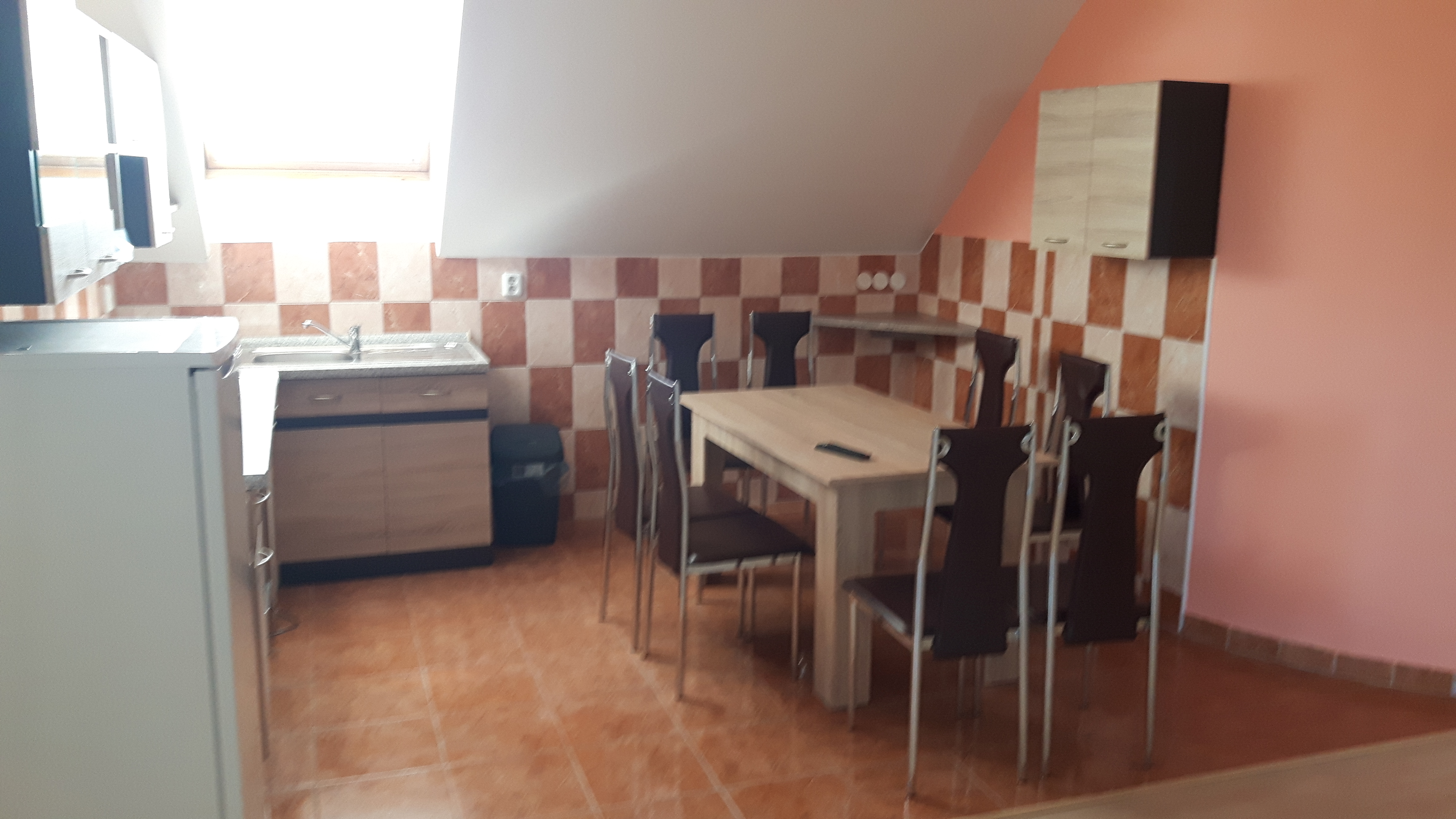 Ubytovanie poskytujeme na dvoch podlažiach. Na prvom poschodí je 5 dvojlôžkových izieb, na druhom (exkluzívnejšom) poschodí sú 4 väčšie izby pre 2 osoby s možnosťou pridania prístelky. Na každom poschodí sa nachádzajú 2 toalety a 1 kúpeľňa. V spoločenskej miestnosti je televízor a pripojenie na internet. K dispozícii je aj kuchynský kútik s platničkou a chladničkou.