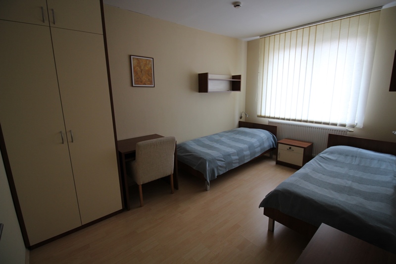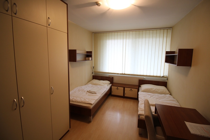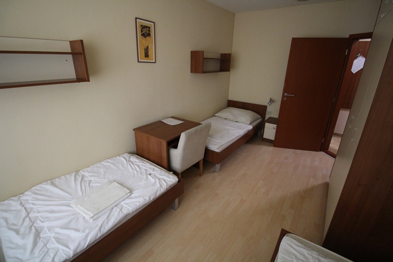 Všetky izby okrem jednolôžkovej izby a štúdia disponujú spoločnými kúpeľňami a toaletami nachádzajúcimi sa na chodbe ubytovne.