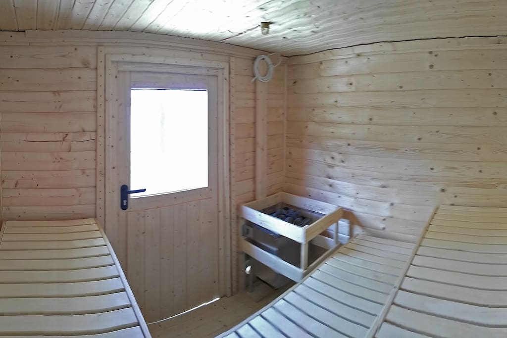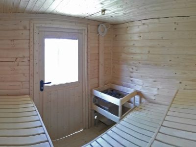 Maximálny komfort Vám dotvorí pobyt v našej saune pre 4 - 6 osôb. V exteriéri si posedíte na terase, kde si môžete grilovať klobásky či ulovenú rybu. Pre detičky je pripravené detské ihrisko.