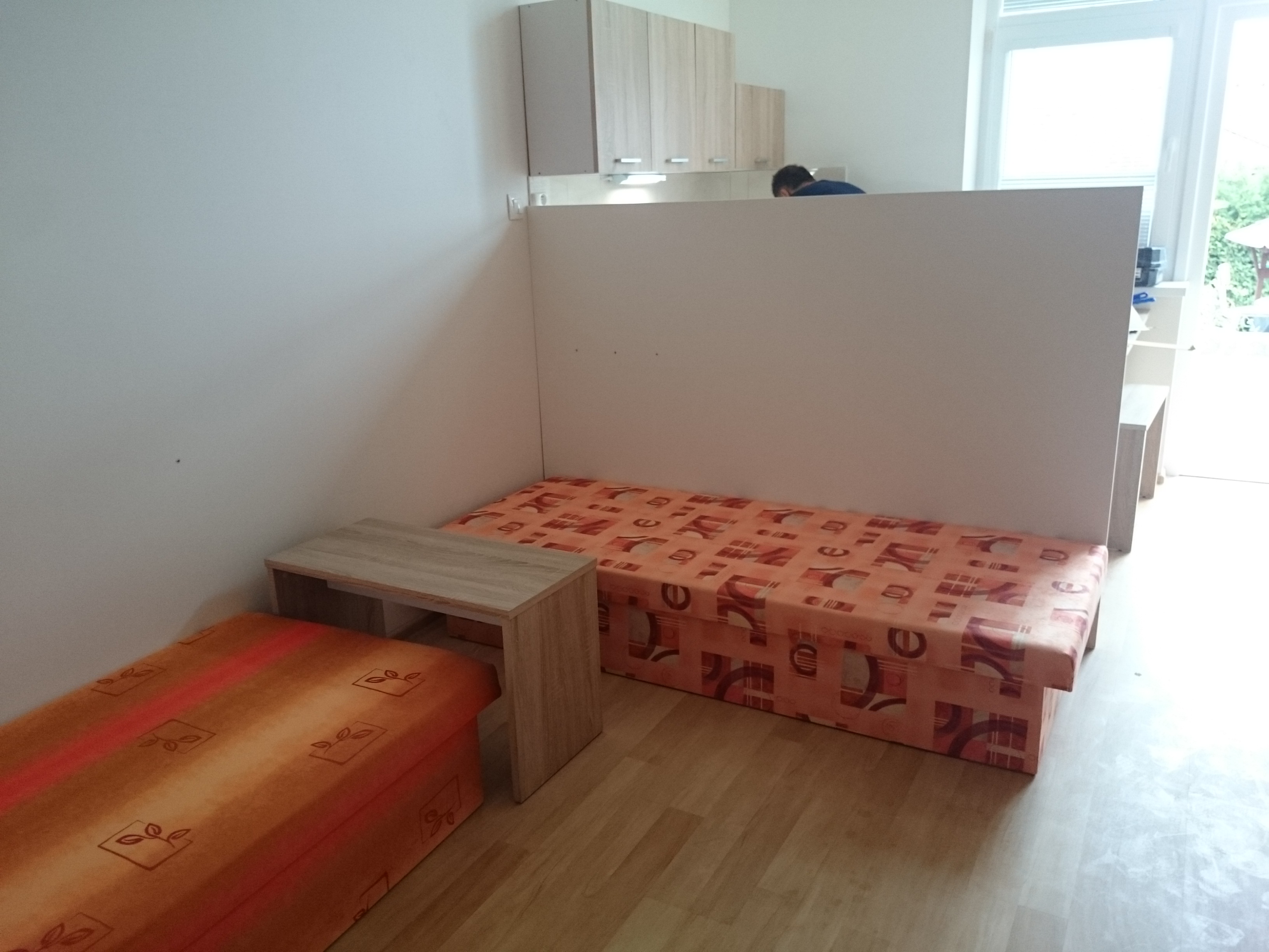 Ubytovanie sa skladá z 3 samostatných garzóniek na prízemí, 2 samostatných izieb s kuchyňou so spoločnou kúpeľňou a na poschodí je 14 lôžok rozdelených v 4 miestnostiach. Nachádza sa tu 1 spoločná kuchyňa a 1 privátna kuchyňa, ktorá patrí k izbe a 2 spoločné kúpeľne s oddelenými toaletami. Vrchné poschodie je plánované využiť pre 1 maximálne 2 firmy, ktorým nevadí zdieľať spoločné miestnosti.