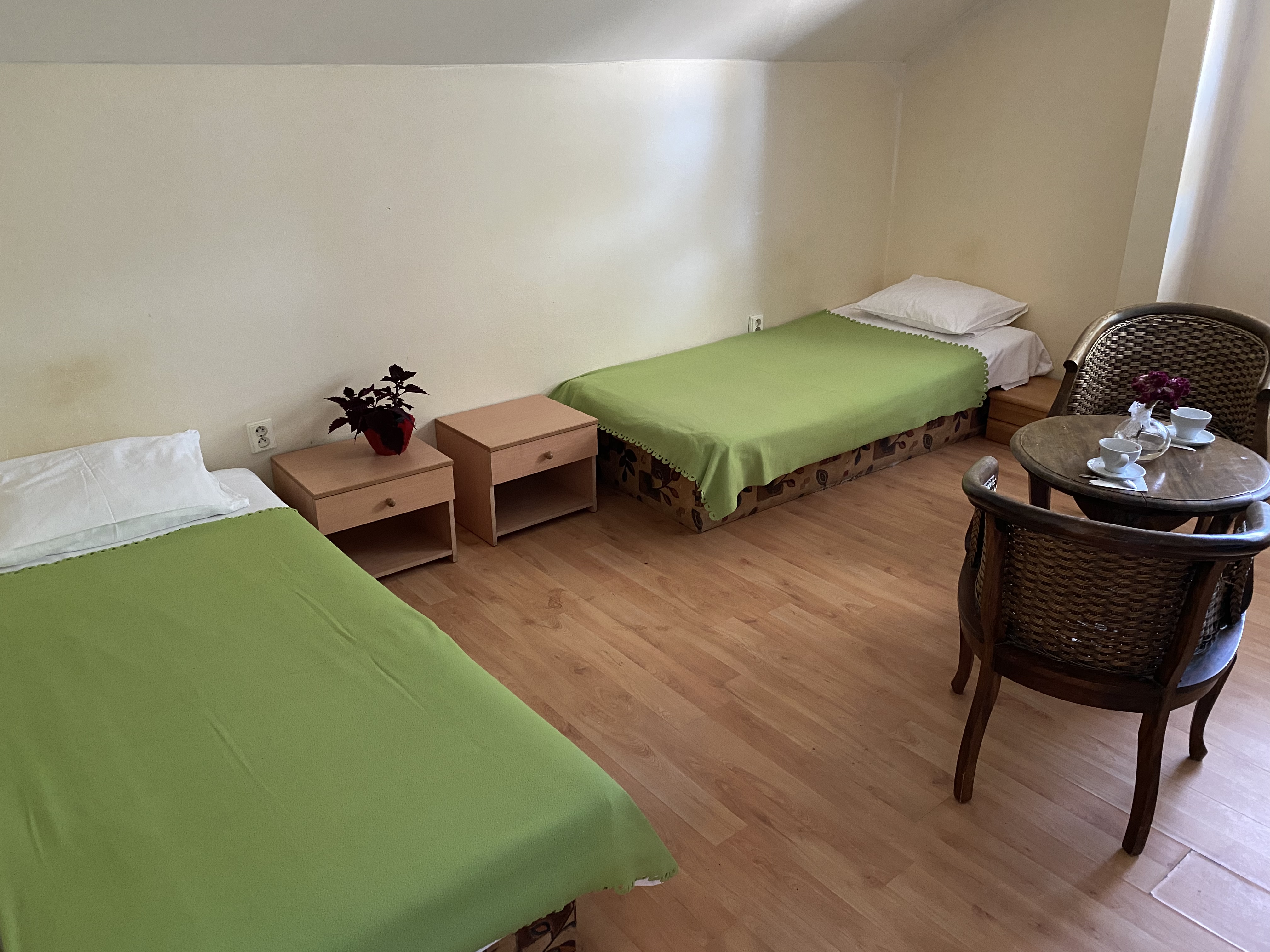Ubytovanie vhodné pre nenáročných hostí, s krátkodobým alebo dlhodobým ubytovaním, s vlastnou kúpeľnou a wc.