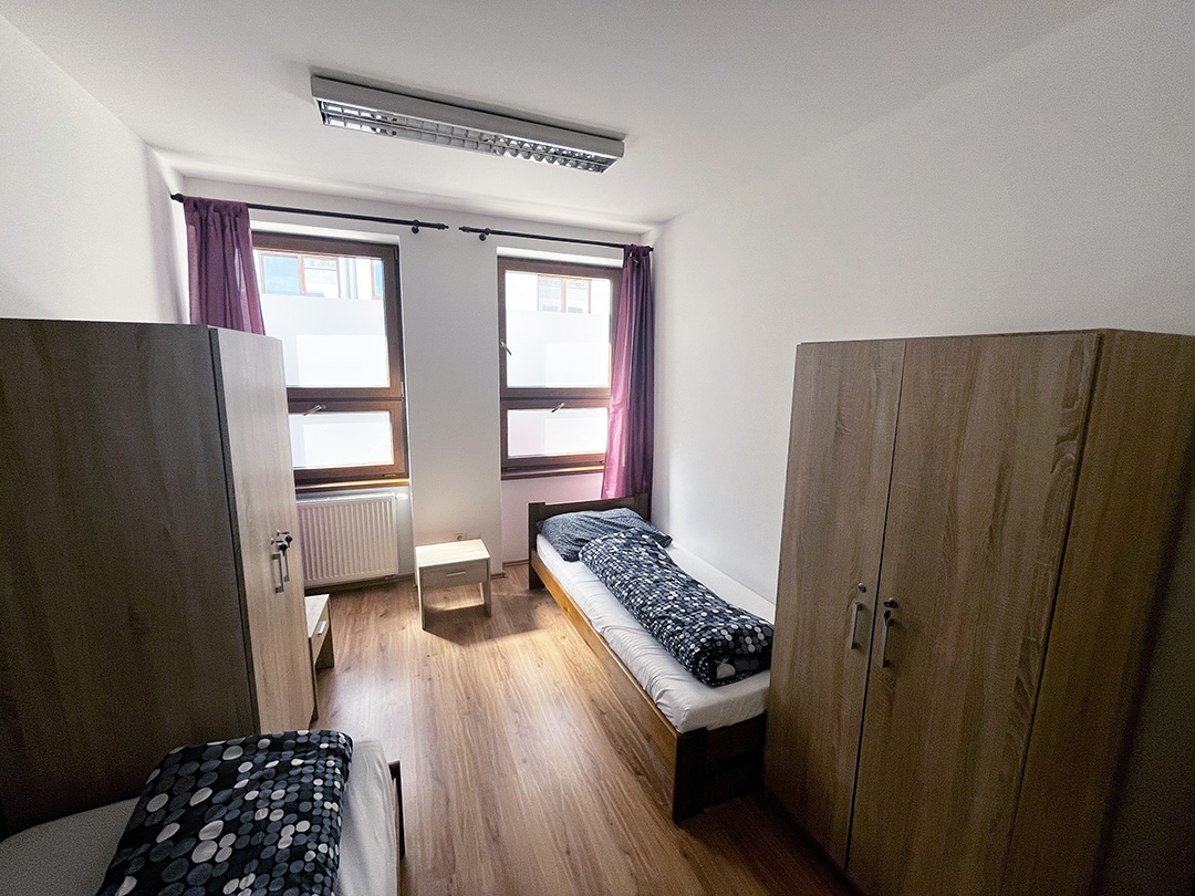 • Štandardné izby: 2-, 3-, a 4-lôžkové, so spoločnou kúpeľňou a kuchyňou v rámci bunky.