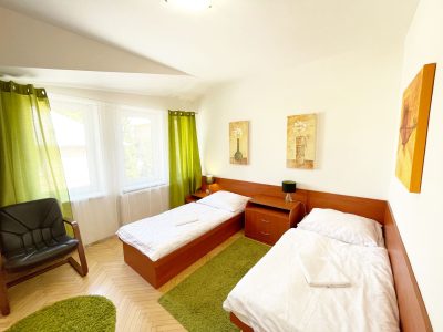Ubytovacie zariadenie VILA HARMÓNIA Vám ponúka izby a apartmány s vkusným interiérom. Ponúkame izby a apartmány s manželskou posteľou alebo oddelenými lôžkami s možnosťou prístelky. Každá izba disponuje vlastným sociálnym zariadením - toaleta a sprchový kút. Izby sú vybavené štandardom: posteľ, skriňa, stolík, stolička, televízor, WiFi je samozrejmosťou. Ubytovanie je teda vhodné pre jednotlivcov, pre páry, ale taktiež pre menšie skupiny alebo ako dlhodobé bývanie. Celková kapacita zariadenia je 14 osôb. Budova je situovaná blízko historického centra Trenčína, kam sa pešou chôdzou dostanete približne za 8 minút. V blízkosti sa taktiež nachádza obchodné centrum MAX a obchodný dom Kaufland do 8 minút od ubytovania. Pre milovníkov prírody je tu lesopark Brezina s miestami na opekanie, cyklistické trasy, turistické chodníky a iné.
