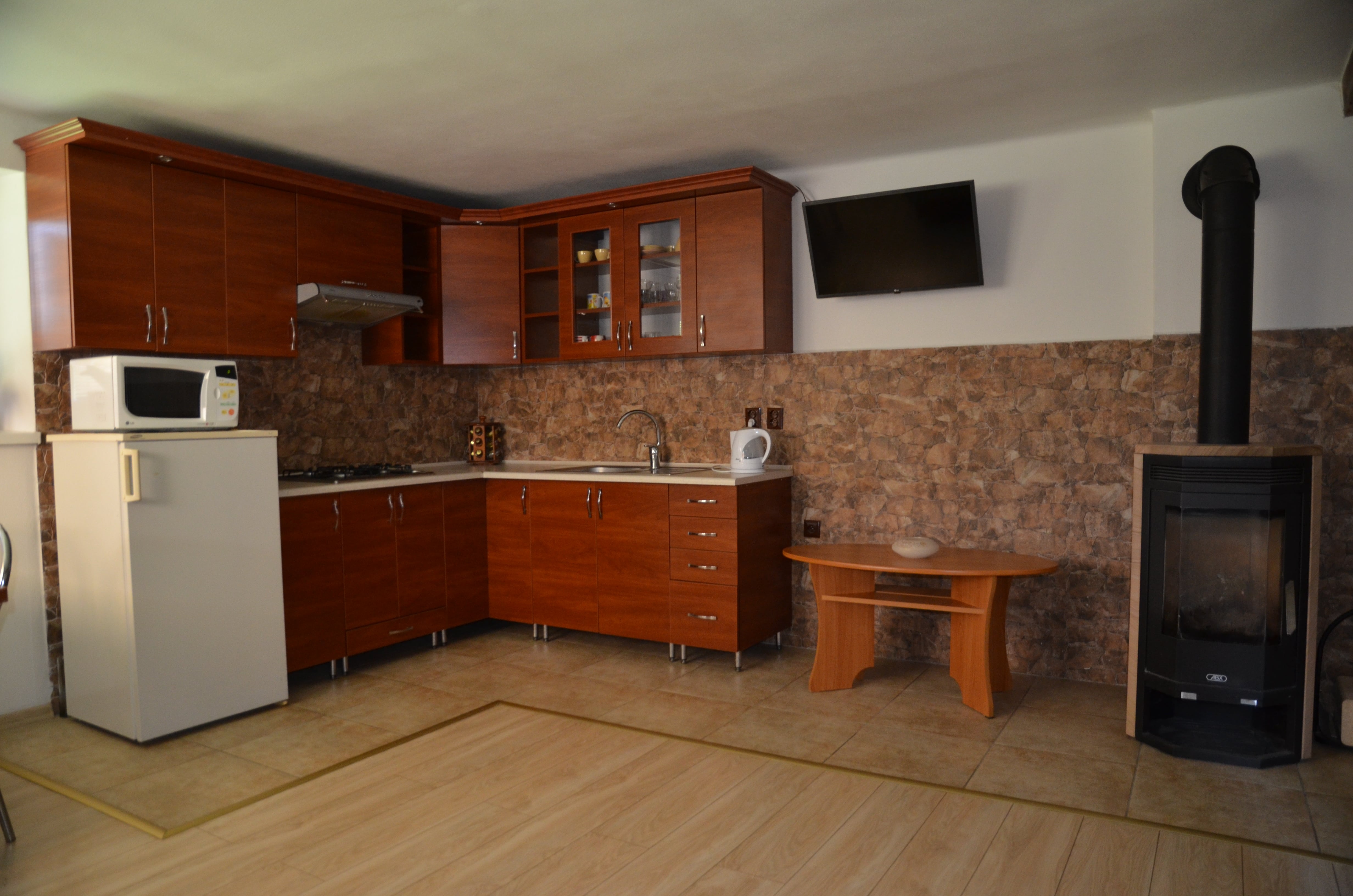 K dispozícii je plne vybavená kuchyňa so sporákom, chladničkou, mikrovlnkou a rýchlovarnou kanvicou, ďalej kúpeľňa so sprchou a WC, televízor, práčka a bezplatné wifi pripojenie. Parkovanie je možné priamo vo dvore.
