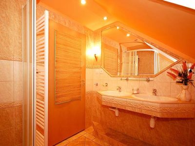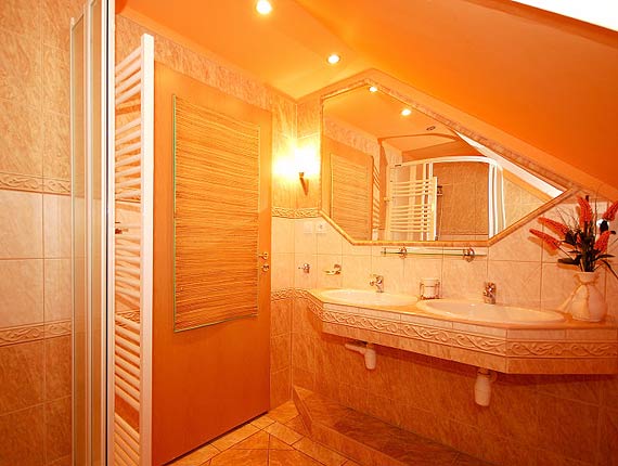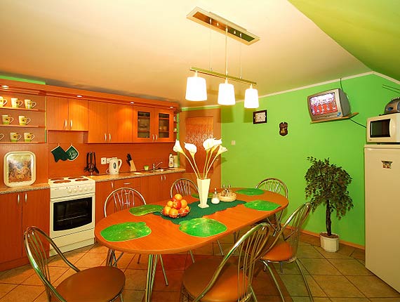 Kuchyňa Apartmánu 1 je vybavená elektrickým sporákom, chladničkou, rýchlovarnou kanvicou, mikrovlnou rúrou a TV. Samozrejmosťou je tiež komfortná kúpeľňa s dvoma umývadlami, sprchovým kútom a wc. Naviac je v celom objekte zabezpečené internetové WIFI pripojenie.