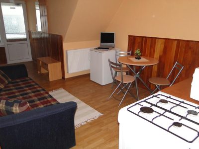 Privát má komplet vybavené tri apartmány . Každý apartmán má 4+2 lôžka , komplet vybavenú kuchynku ,mikrovlnku , chladničku , rýchlovarnú kanvicu , kombinovaný sporák , TV-SAT , WC- sprchu . V prípade záujmu objednanie večerí .V celom objekte Wifi grátis .